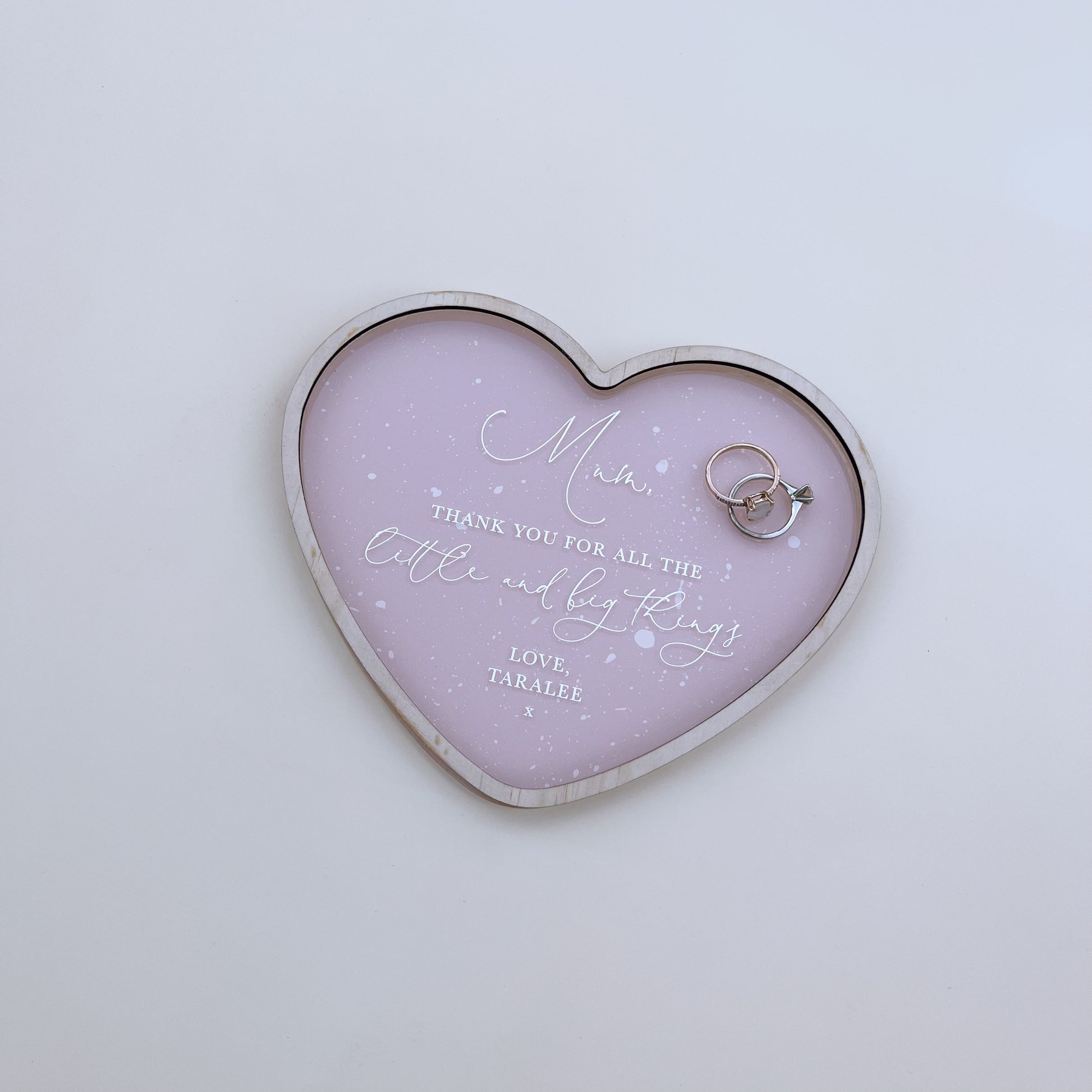A special handcrafted acrylic and wood tray with included personalised message to remind your recipient just what they mean to you each time they place their belongings down on it. ♡