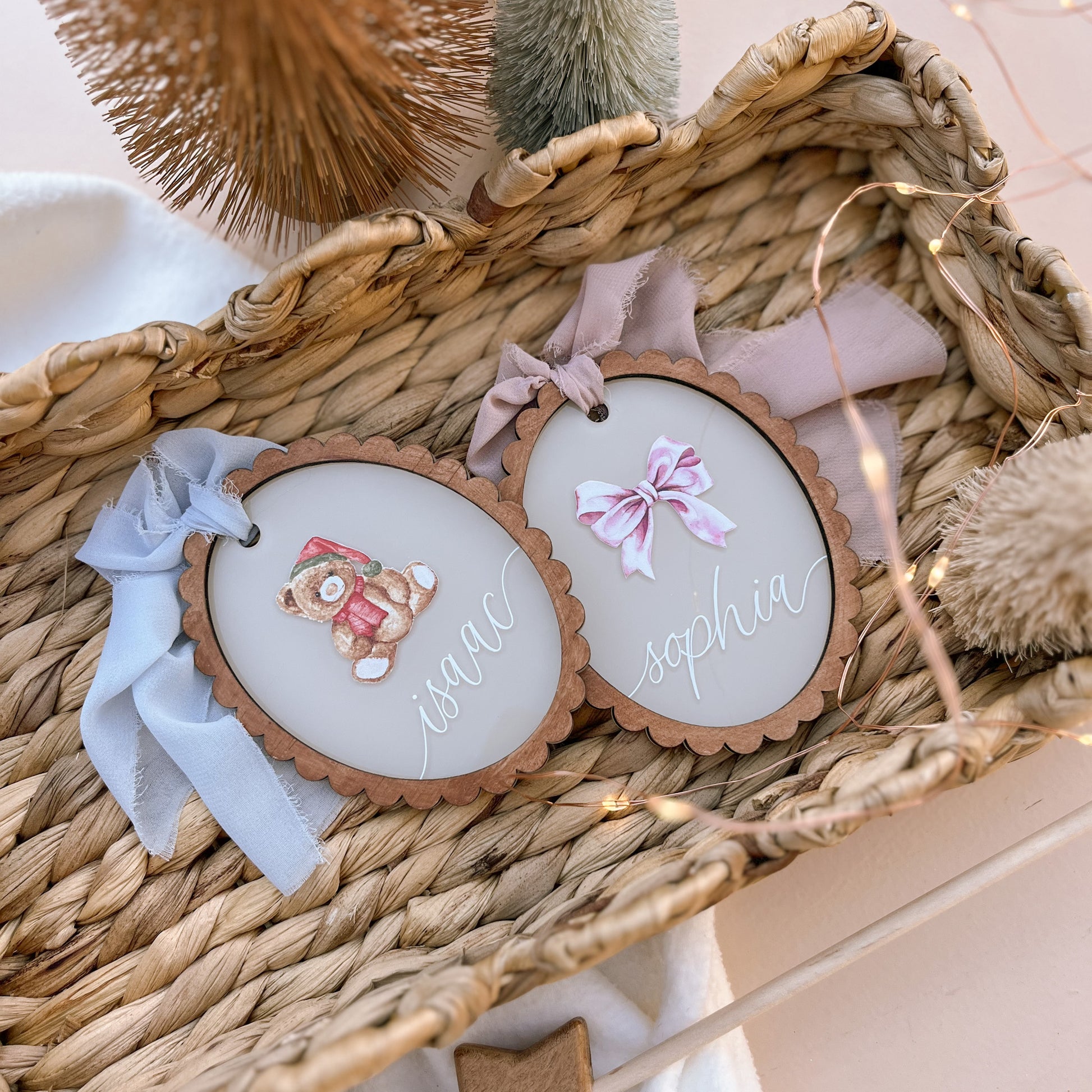 Add a touch of timeless charm to your tree with our handcrafted acrylic Christmas ornament, personalised just for you. Featuring a delicate scalloped border and your choice of vintage-inspired image, each piece is made to capture the magic of Christmases past while becoming a treasured keepsake for years to come. A sweet and timeless heirloom to make your festive season extra special.