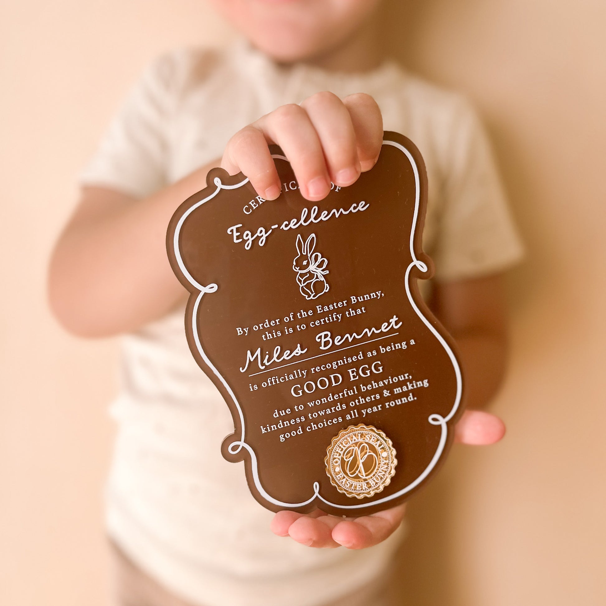 This Acrylic Good Egg Certificate is a fun and whimsical keepsake from the Easter Bunny, awarded to children who’ve been extra good. Featuring a playful design and a gold “official Easter Bunny” stamp, it feels truly special and magical.