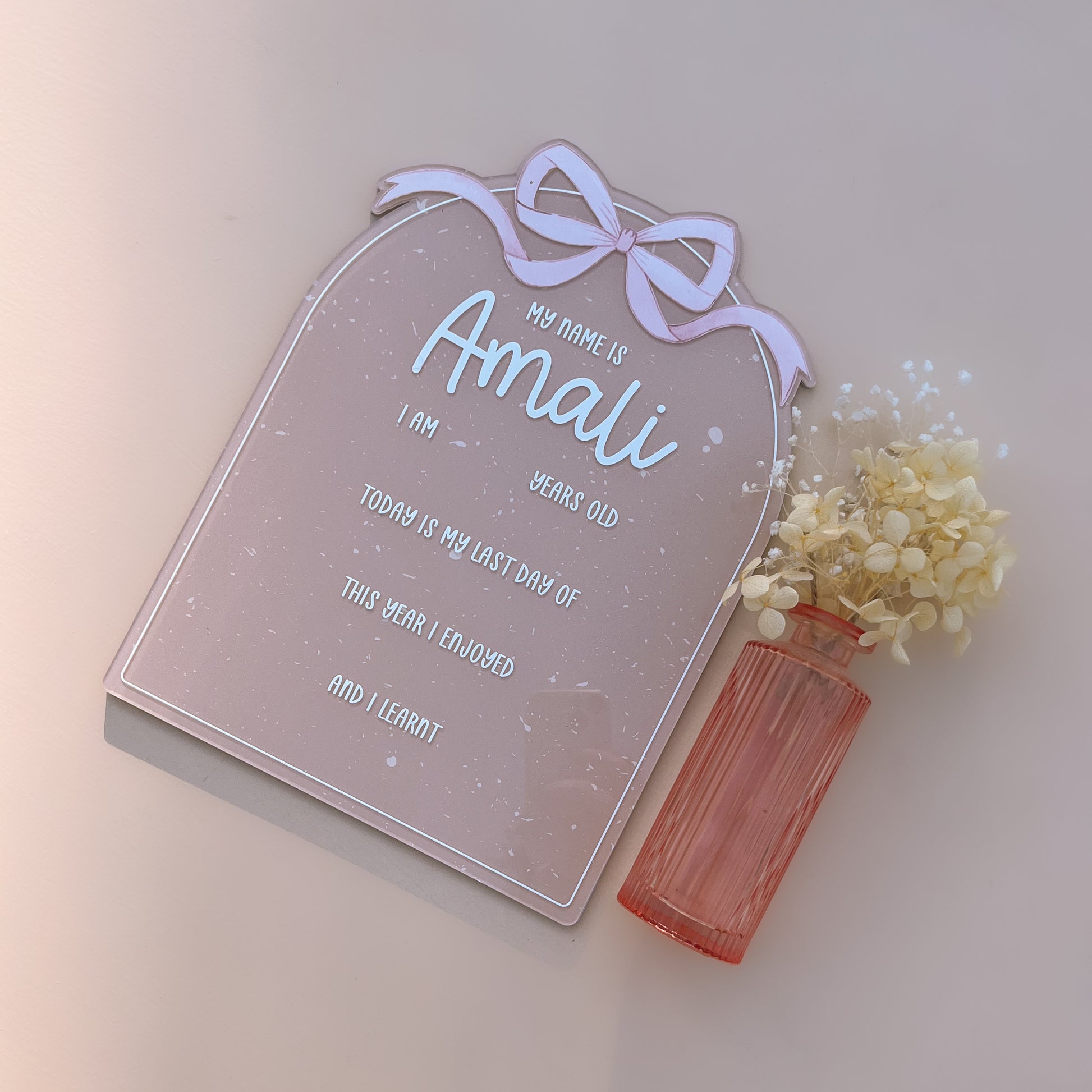Welcoming our newest range of school boards - our gorgeous themed options! Our 'bow' design is cute, versatile, suitable from little and features a set of thoughtfully written prompts you won't find on mass-produced boards. Handcrafted from the highest quality materials, this board is not just for the first and last days of school - it becomes a treasured memory marker to pull out year after year. A timeless keepsake for families who want something truly special!