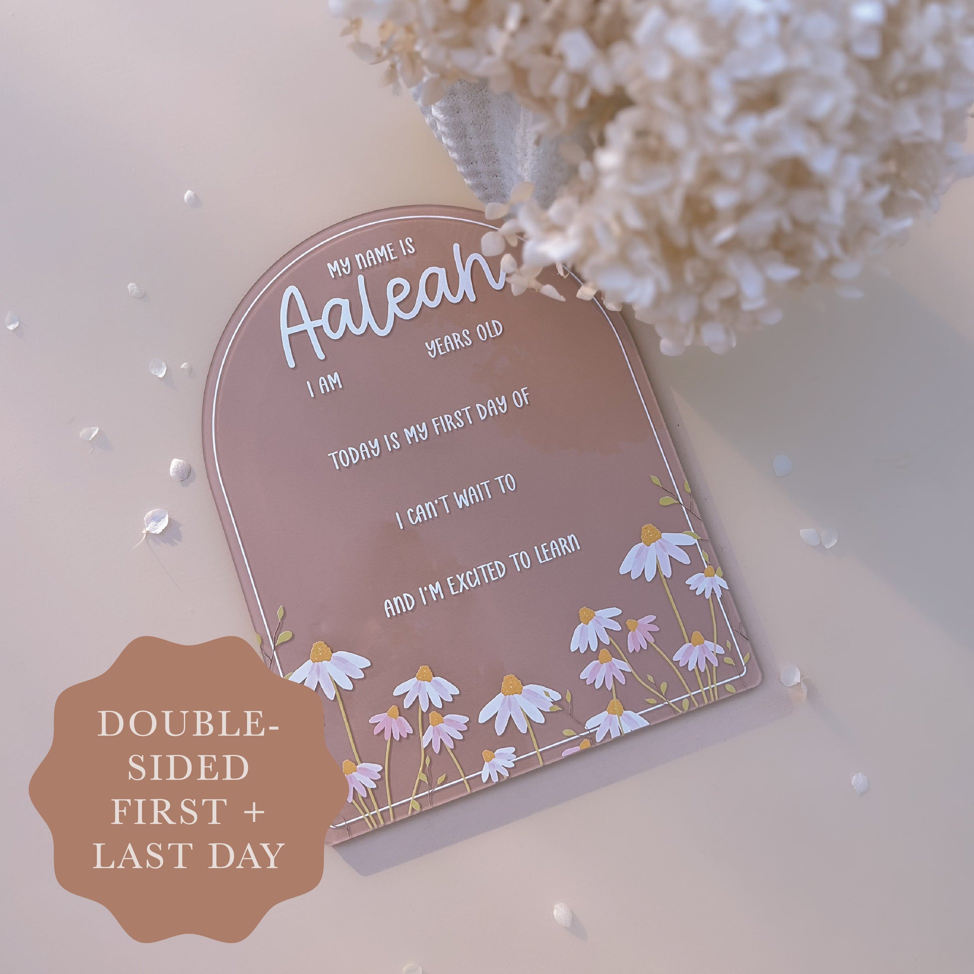 SCHOOL MILESTONE BOARD - FLOWERS | Double-Sided First & Last Day | Multiple Colour + Pattern Options