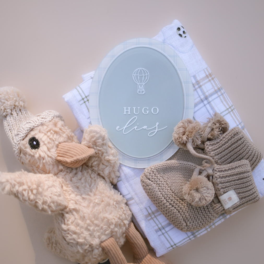 A timeless piece to treasure for years to come, our double layered acrylic name plaque from the Storywoven Collection is thoughtfully designed to add a meaningful, personal touch to your little one’s space. Featuring an elegant oval shape, you can customise your plaque by choosing your preferred front colour and back pattern from a range of beautiful options. Complete your piece with a delicate ribbon finish, or opt for a small image detail instead for a truly unique keepsake — designed to be cherished today and loved for generations.