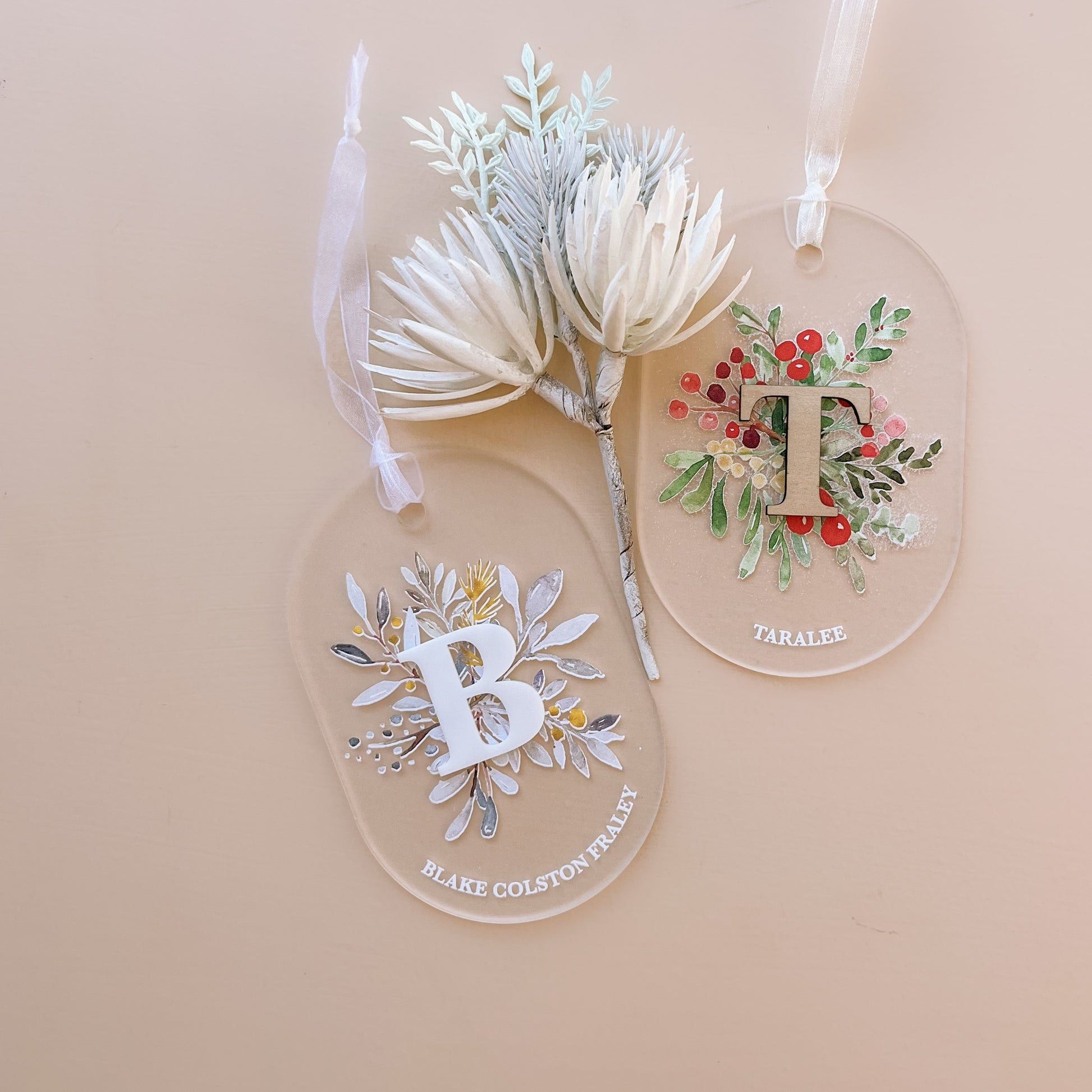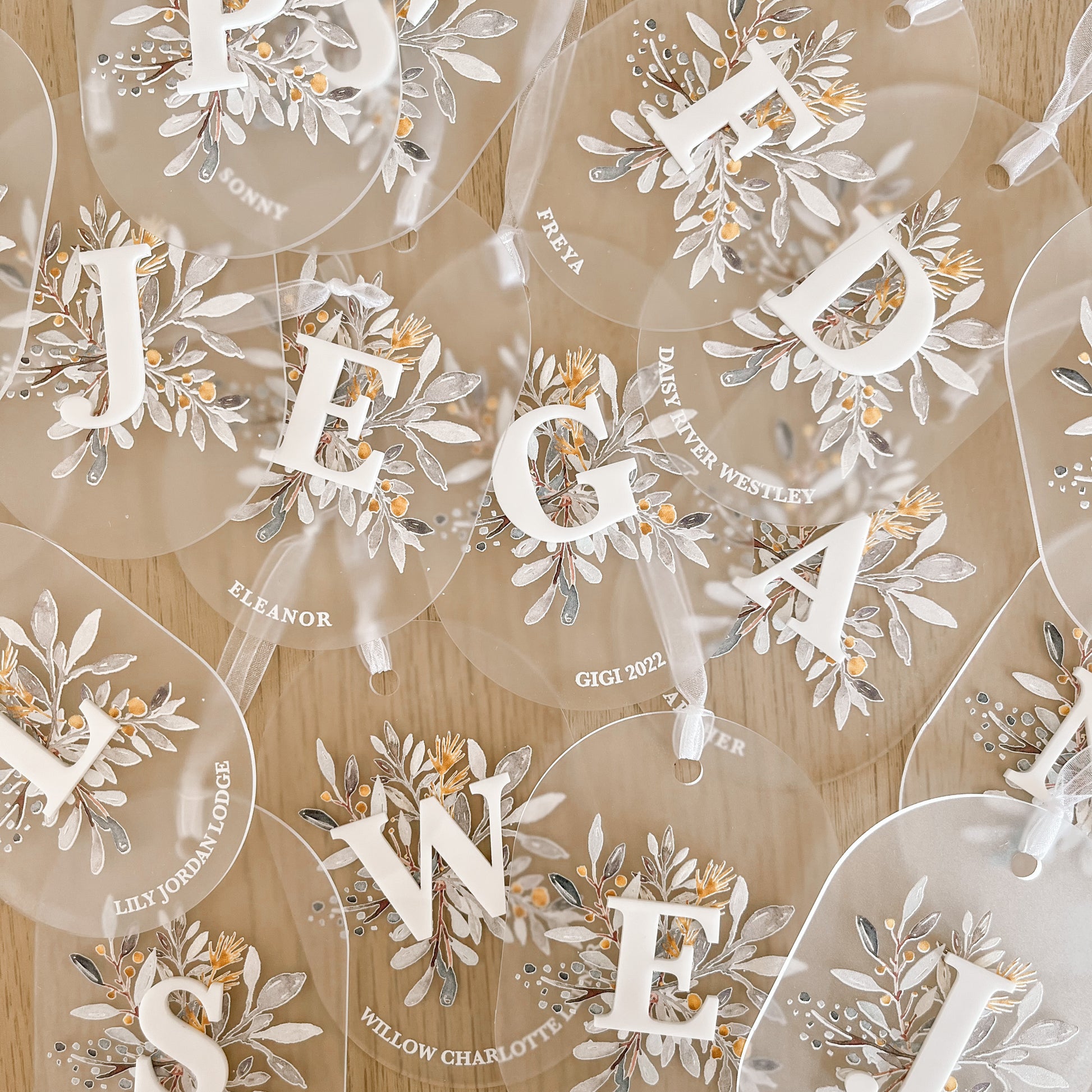 LEAF + INITIAL DETAIL FROSTED ACRYLIC ORNAMENT | Personalised | 3 Shapes