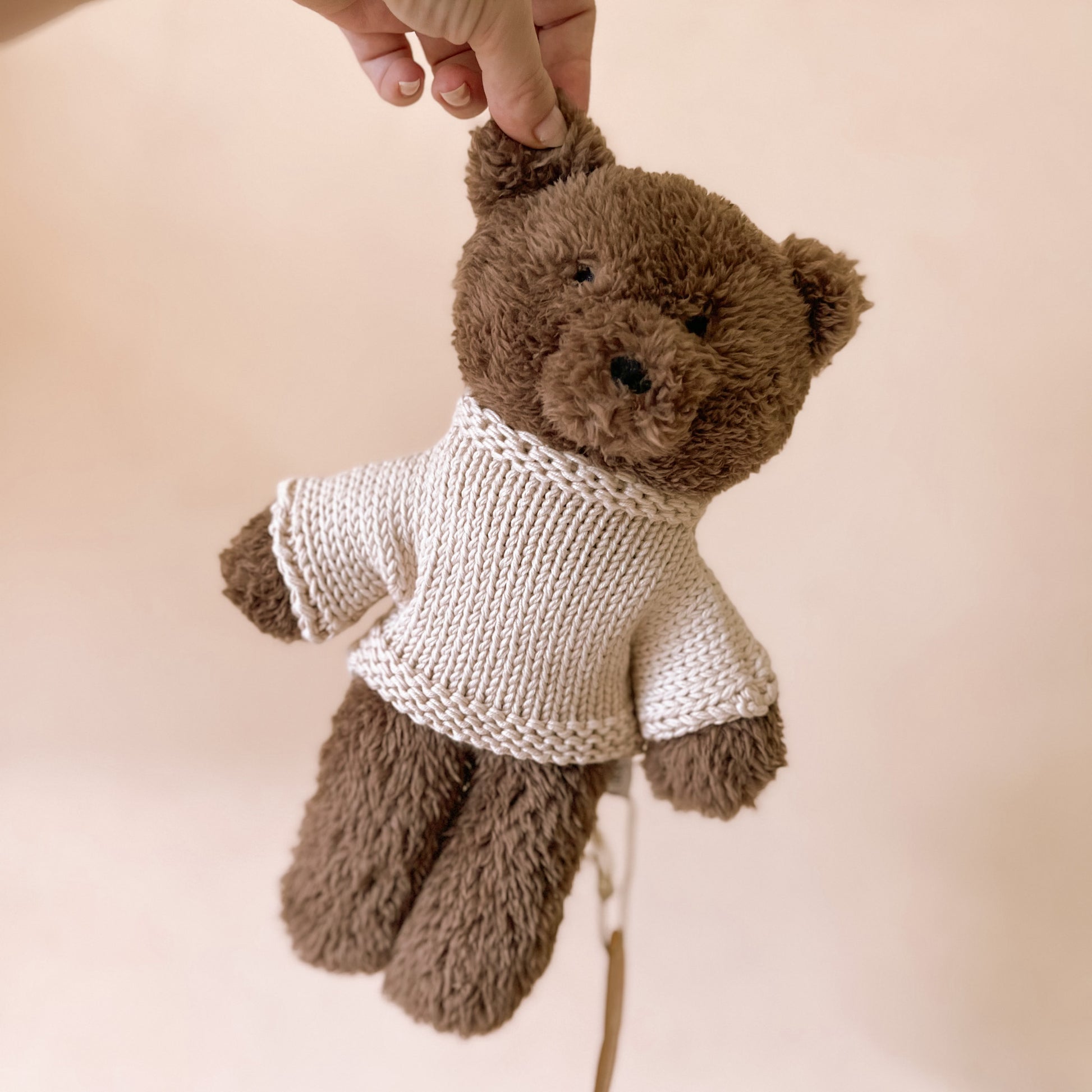 Introducing Milo Bear in Medium size. Made with super soft chocolate plush fabric, Milo is perfect for little hands. He keeps warm with his Australian merino wool jumper and is ready to join in on all your favourite activities - from blowing bubbles to climbing trees!